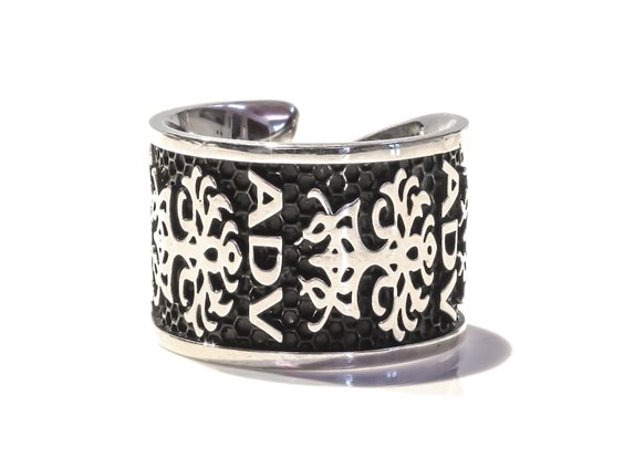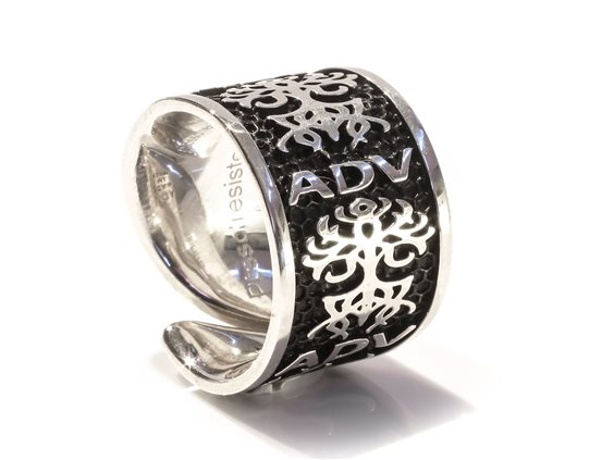 Anello fascia Albero della Vita in argento 925%.. e smalto nero. Misura regolabile dal numero 18 al numero 26. Larghezza fascia 1,5 cm
