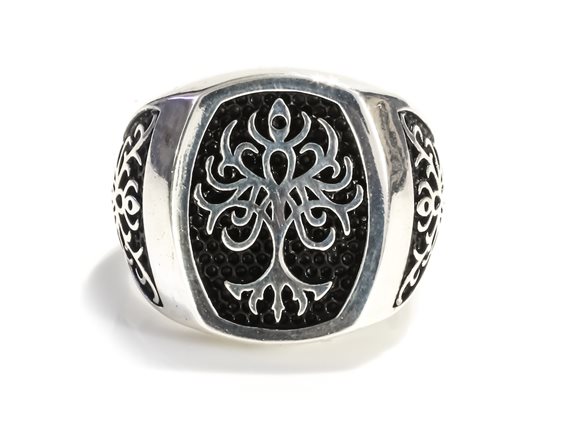 Anello in argento 925%.. e smalto nero, misura regolabile dal numero 19 al 26 Dimensioni scudo frontale 2,1 x 1,8 cm