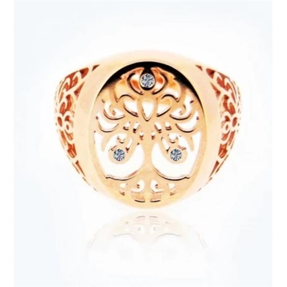 Anello Albero della Vita in oro 9kt 375%.. con 3 diamanti ct 0,03 Anello regolabile dal numero 12 al numero 19. Dimensione scudo 1,8 x 1,5 cm