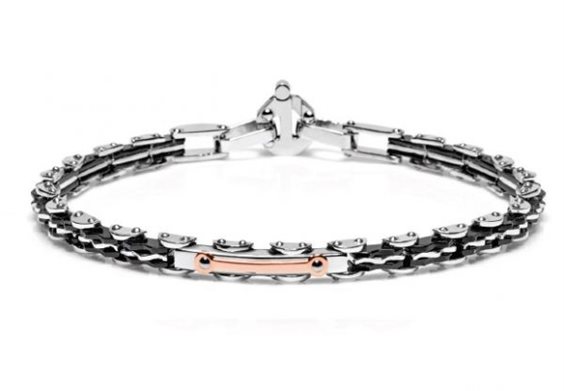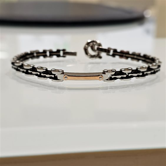 BRACCIALE BARAKA' IN ACCIAIO E TARGA IN ORO 18KT CON DIAMANTE CT 0,02 NELLA CHIUSURA. SCATOLA E GARANZIA ORIGINALI