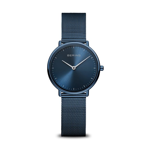 Orologio Bering femminile in acciaio con cinturino maglia milanese blu e cassa rotonda 29 mm con quadrante blu