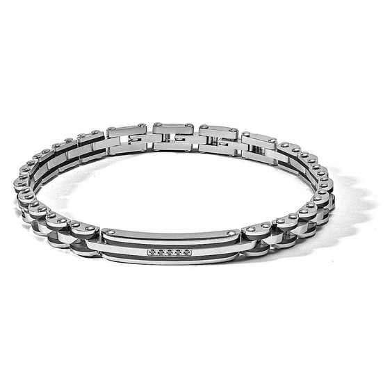 Bracciale in acciaio lucido, PVD nero e zirconi neri