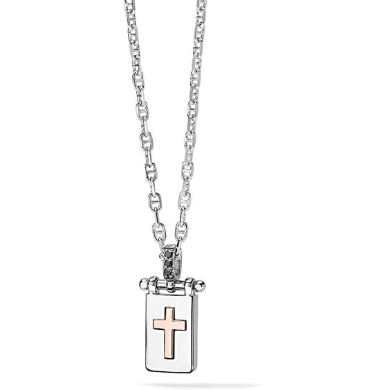 Collana da uomo di Comete della collezione Faith. Girocollo in Argento 925‰. Diamanti neri P.Ct. 4. Collana della lunghezza di 50 CM e chiusura con moschettone a goccia. Gioiello con misura: 0,87 x 2,18 cm . La referenza è UGL 669