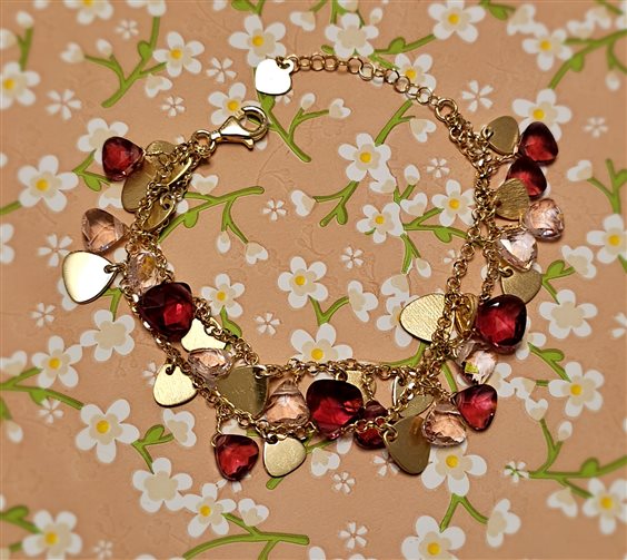 Bracciale con doppia catena in argento 925%.. placcato oro 24kt con pietre colorate pendenti. Lunghezza bracciale cm 16+ 2,5 cm di anellini chiusura a moschettone. Il tutto abbinato con scatola, shopper e garanzia ufficiali.