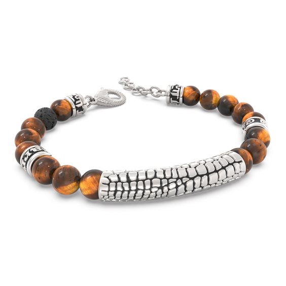 L’Occhio di Tigre è una pietra notevolmente distintiva, caratterizzata da riflessi cangianti che oscillano tra tonalità d’oro e sfumature brune o marroni. Come molte altre pietre preziose, l’Occhio di Tigre è associato a un elemento specifico: il fuoco, simbolo di energia e forza. Questa gemma è profondamente connessa alla volontà, alla fiducia e alla forza interiore, incarnando in modo fondamentale tali qualità. Tutti i bracciali El Barrio sono prodotti con pietre naturali. La lega metallica argentata di cui sono composti, ha un ulteriore bagno di platino. Ciò li rende unici, preziosi e duraturi. MISURA BRACCIALE 20+3 CM