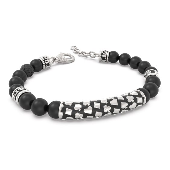L’Onice nero è una gemma di origine vulcanica che appartiene alla famiglia dei calcedoni. Il suo nome, “onice,” ha radici nell’antica lingua greca, derivando dalla parola “onux,” che significa “unghia” o “artiglio,” evidenziando la sua notevole durezza. Spesso chiamata la “pietra della maturità,” l’Onice nero è famosa per la sua energia potente ed è particolarmente apprezzata da coloro che già possiedono una forte forza di carattere e un profondo equilibrio interiore. Nel caso di questo bracciale, l’Onice è stato lavorato con una finitura sabbiata, conferendo un tocco unico ed elegante al gioiello. Tutti i bracciali El Barrio sono prodotti con pietre naturali. La lega metallica argentata di cui sono composti, ha un ulteriore bagno di platino. Ciò li rende unici, preziosi e duraturi. MISURA BRACCIALE 20+3 CM