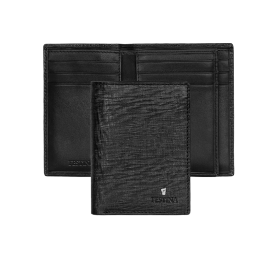Portacarte con patta Festina in pelle nera con texture morbida all'esterno, con diverse tasche. Con un design classico, elegante e senza tempo ispirato al design unico degli orologi della collezione Chrono Bike.