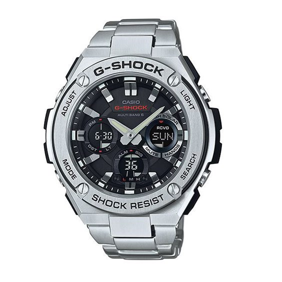 Prodotto: orologio multifunzione uomo Casio G Steel GST-W110D-1AER Orologio Multifunzione Di Casio Della Linea G Steel. Modello Con Luce Led Automatica Completa. Caratteristiche Tecniche: Antiurto, Funzione Solare, Ricezione Segnale Radio (Eu, Usa, Jpn, Chn), Neobrite, Funzione Ora Mondiale, Cronometro - 1/100 Sec - 1 Ora, Timer - 1/1 Sec - 100 Min, 5 Allarmi Giornalieri, Attivazione/Disattivazione Del Suono Dei Tasti, Funzione Di Spostamento Delle Lancette, Calendario Automatico, Formato 12/24 Ore, Vetro Minerale, Cassa In Resina E Acciaio, Bracciale In Acciaio Inox, Chiusura Di Sicurezza, Indicatore Livello Batteria, Classificazione Di Impermeabilita` (20 Bar)