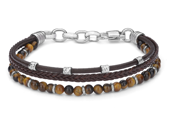 Bracciale in cuoio Marrone con semilavorati in acciaio e pietre naturali Occhio di Tigre MATERIALE: Acciaio 316L (anallergico) e Cuoio Italiano PIETRE: Occhio di Tigre MISURA: 19 + 3 cm PESO: 12 gr I gioielli H2on sono esclusivamente di produzione italiana con misura personalizzabile, accompagnati dalla propria confezione regalo e certificato di autenticità.