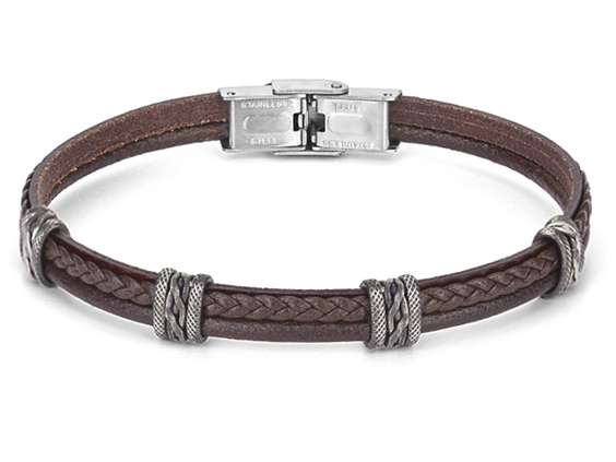 Bracciale in acciaio e cuoio marrone intrecciato e liscio con semilavorati bruniti. MATERIALE: Acciaio 316L (anallergico) CUOIO: Marrone MISURA: 21 cm LARGHEZZA: Cuoio 10 x 3 mm PESO: 19 gr I gioielli H2on sono esclusivamente di produzione italiana con misura personalizzabile, accompagnati dalla propria confezione regalo e certificato di autenticità.