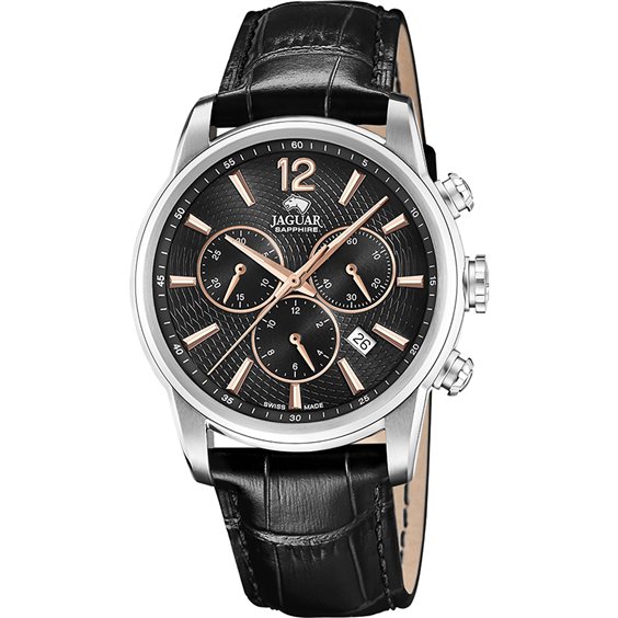 Questo orologio Jaguar ha una cassa in Inox con un diametro di 42 mm ed è dotato di un cinturino in Pelle. All'interno della cassa si trova un movimento di Ronda e l'orologio è dotato di un cristallo di Zaffiro. L'orologio è impermeabile a 5ATM. Questo significa che l'orologio è adatto per la doccia. L'orologio è fornito con 2 Anni di garanzia.