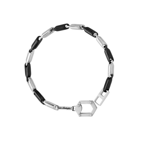 BRACCIALE IN ACCIAIO E CERAMICA NERA LUNGO CM 21 CON SCATOLA E GARANZIA UFFICIALI TONINO LAMBORGHINI