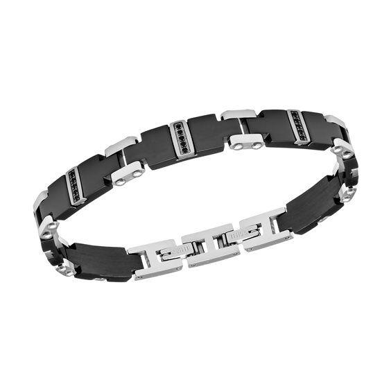 BRACCIALE IN ACCIAIO E CERAMICA NERA CON ZIRCONI, LUNGO CM 18,5 + ALLUNGO A CM 21,5 FIRMATO TONINO LAMBORGHINI CON SCATOLA E GARANZIA UFFICIALI