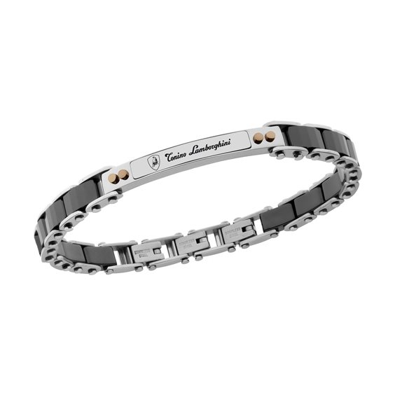 BRACCIALE IN ACCIAIO E CERAMICA NERA LUNGO CM 21,5 CON POSSIBILITA' DI ACCORCIO A CM 18,5. FIRMATO CON SCATOLA E GARANZIA UFFICIALI TONINO LAMBORGHINI