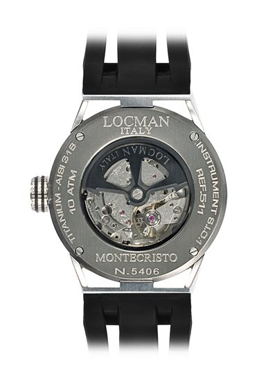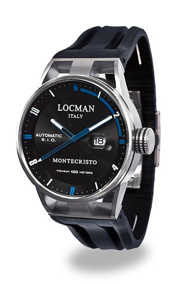 Orologio solo tempo meccanico automatico collezione MONTECRISTO. CASSA: Acciaio Aisi 316L diametro 44mm; FONDELLO: Titanio e oblò in vetro minerale; CORONA: Impermeabile a pressione; VETRO: Minerale antigraffio con trattamento zaffiro; QUADRANTE: Di colore nero con particolari blu e con numeri arabi ed indici stampati bianchi; MOVIMENTO: Automatico solo tempo elaborato S.I.O.(Scuola Italiana d’Orologeria); CINTURINO: Gomma siliconica nera; IMPERMEABILITA': Fino a 10ATM (100mt di profondità).