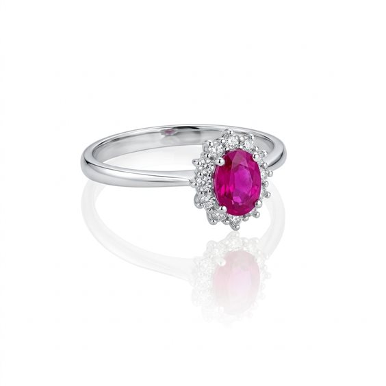 Anello in oro 750%.. contornato da diamanti ct 0,14 G VS ed un rubino birmano ct 0,68 al centro Scatola e certificato di garanzia originali