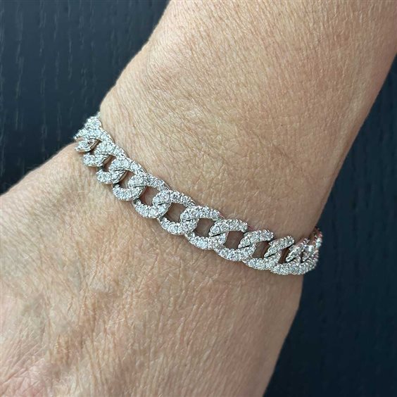 Bracciale in oro bianco 750%.. con diamanti ct 3,24 G VS maglia groumet morbida. Lunghezza cm 18 e larghezza della maglia 0,85mm con scatola e certificato di garanzia originali. Ogni gioiello Mirco Visconti è coperto da un Certificato Internazionale di Sostituzione, valido un anno dall'acquisto in caso di furto, scippo, rapina o incendio.