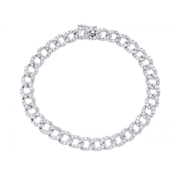 Bracciale in oro bianco 750%.. con diamanti ct 3,24 G VS maglia groumet morbida. Lunghezza cm 18 e larghezza della maglia 0,85mm con scatola e certificato di garanzia originali. Ogni gioiello Mirco Visconti è coperto da un Certificato Internazionale di Sostituzione, valido un anno dall'acquisto in caso di furto, scippo, rapina o incendio.