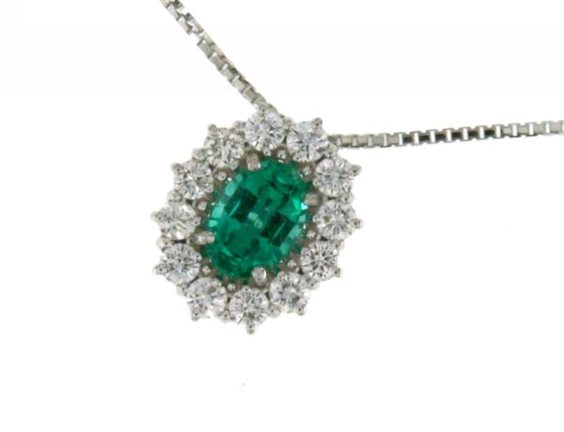 Girocollo Mirco Visconti in oro bianco 18kt con Smeraldo taglio ovale 0,79ct COLOM. e contorno di diamanti 0,50ct G Vs