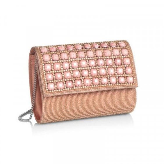 Clutch con cristalli, pietre rosa e strass color oro. larghezza cm 16 – altezza cm 13