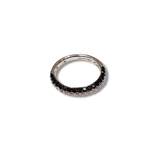 Anello a fascia in oro 750%.. con diamanti neri ct 0,62 ai lati ed una fascia di diamanti centrali ct0,40 G VS. Misura dito 10