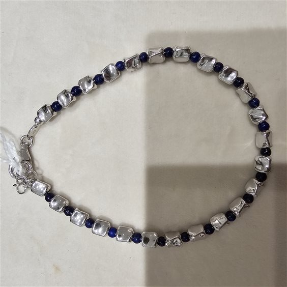 Bracciale in argento 925%.. con sfere di lapislazzulo blu. Chiusura a moschettone. Bracciale lungo cm 20 + 2 cm di anellini